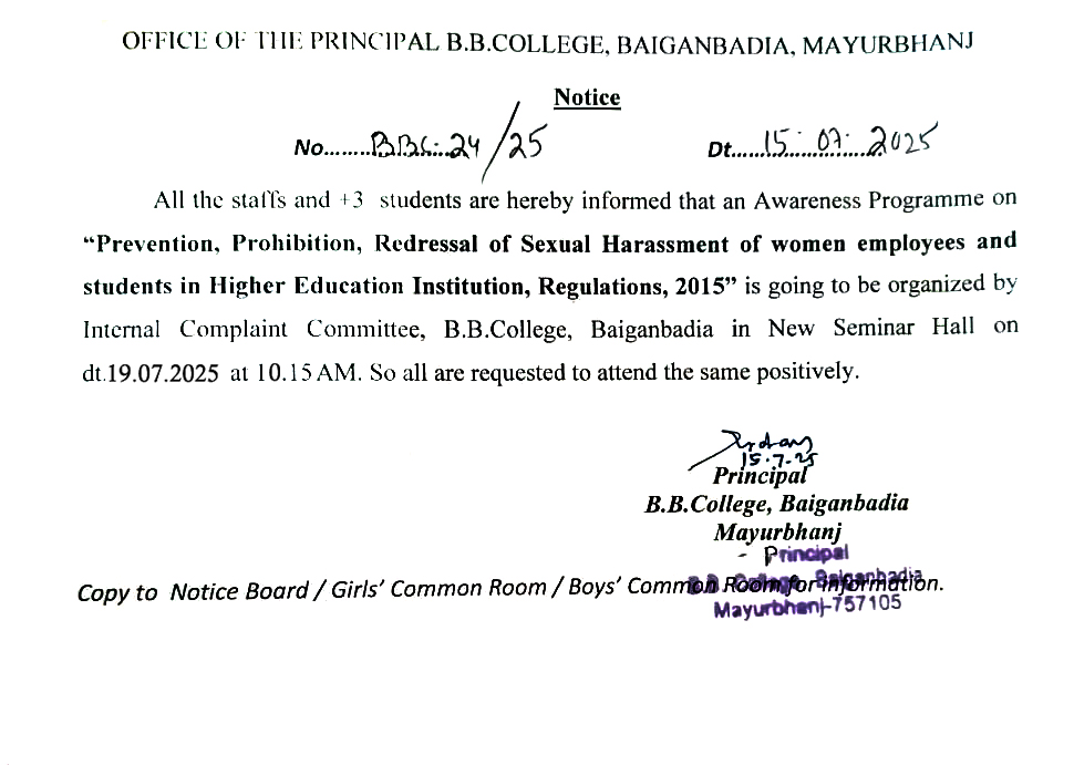 Awareness program on Prevention, Prohibition, Redressal of Sexual Harrasment of women employees and students